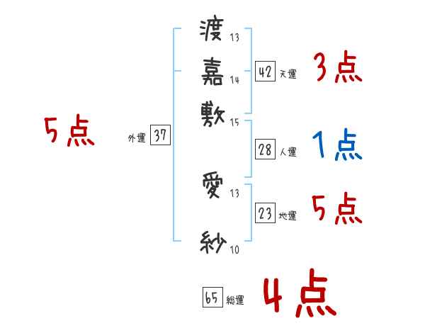 渡嘉敷愛紗さんの画数の鑑定結果