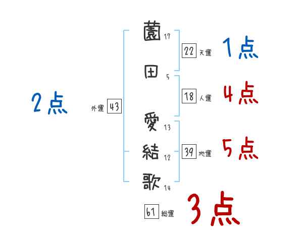 薗田愛結歌さんの画数の鑑定結果