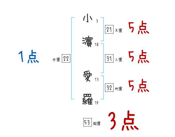 小濵愛羅さんの画数の鑑定結果
