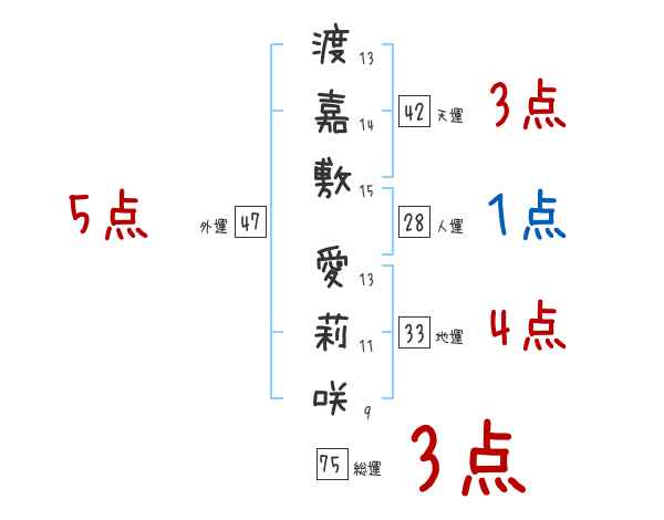 渡嘉敷愛莉咲さんの画数の鑑定結果