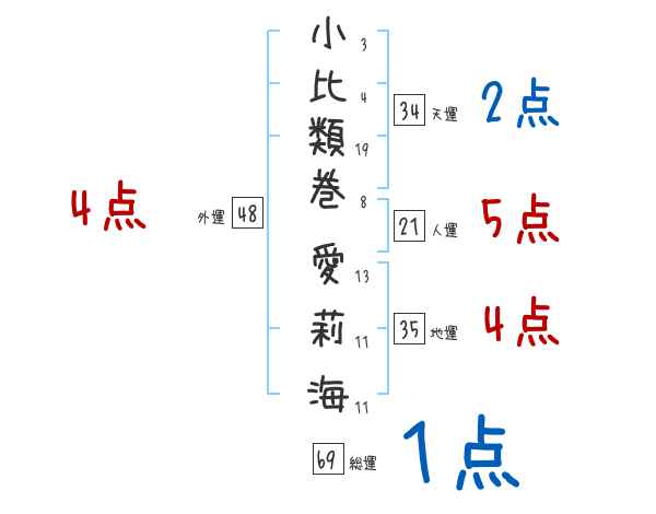 人運![]() | 小比類巻愛莉海さんの人運は21画の5つ星!統率力がある。独立し成功する。名誉を手に入れる。 性格や才能などを表す2番目に重要な運勢です。人間関係や協調性、社会的な成功に影響します。主に20歳から50歳ぐらいまでの中年期の運勢を表します。 |