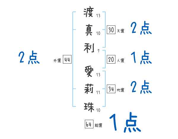 渡真利愛莉珠さんの画数の鑑定結果