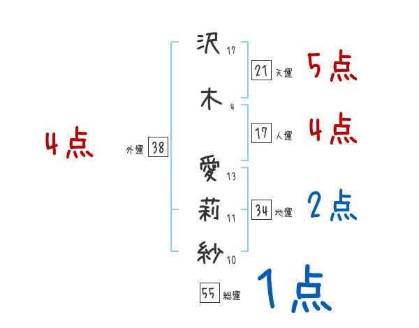 沢木愛莉紗さんの画数の鑑定結果