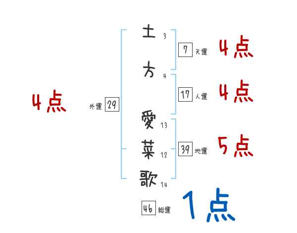土方愛菜歌さんの画数の鑑定結果