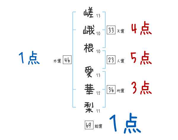 嵯峨根愛華梨さんの画数の鑑定結果