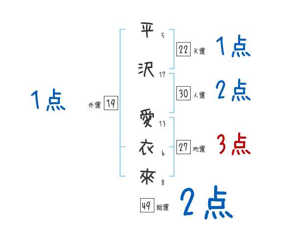外運![]() | 平沢愛衣來さんの外運は19画の1つ星!優れた才能を持ちますが、協調性が足りないことも。周りの人と協力する事を意識しましょう。 生活面を象徴する運勢です。外部から受ける影響力を表し、結婚運、家庭運や職場、環境への順応性を表します。 |