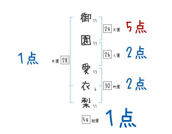 外運![]() | 御園愛衣梨さんの外運は28画の1つ星!家庭環境に注意。スポーツで活躍できる能力があるかも。 生活面を象徴する運勢です。外部から受ける影響力を表し、結婚運、家庭運や職場、環境への順応性を表します。 |