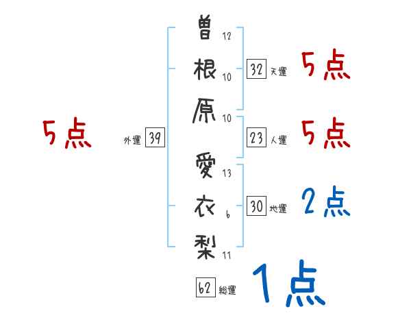 曽根原愛衣梨さんの画数の鑑定結果