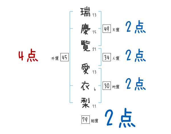 瑞慶覧愛衣梨さんの画数の鑑定結果