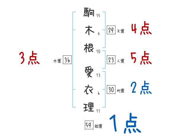 駒木根愛衣理さんの画数の鑑定結果