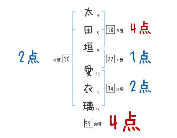 外運![]() | 太田垣愛衣璃さんの外運は30画の2つ星!浮き沈みの激しさに注意しましょう。 生活面を象徴する運勢です。外部から受ける影響力を表し、結婚運、家庭運や職場、環境への順応性を表します。 |