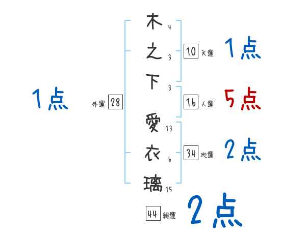 木之下愛衣璃さんの画数の鑑定結果