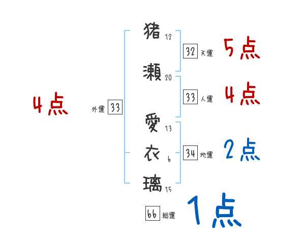 猪瀬愛衣璃さんの画数の鑑定結果