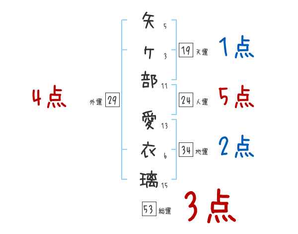 矢ヶ部愛衣璃さんの画数の鑑定結果