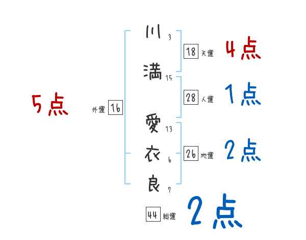 外運![]() | 川満愛衣良さんの外運は16画の5つ星!人望が厚く大きく発展する。逆転成功が見える。 生活面を象徴する運勢です。外部から受ける影響力を表し、結婚運、家庭運や職場、環境への順応性を表します。 |