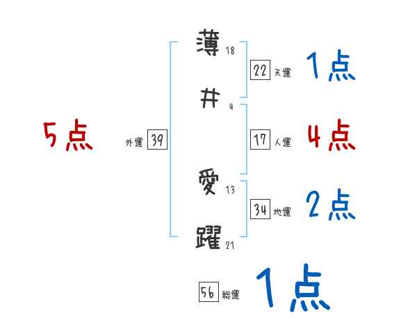 薄井愛躍さんの画数の鑑定結果