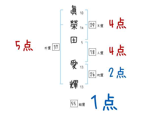 眞榮田愛輝さんの画数の鑑定結果