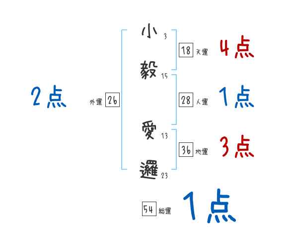 小毅愛邏さんの画数の鑑定結果