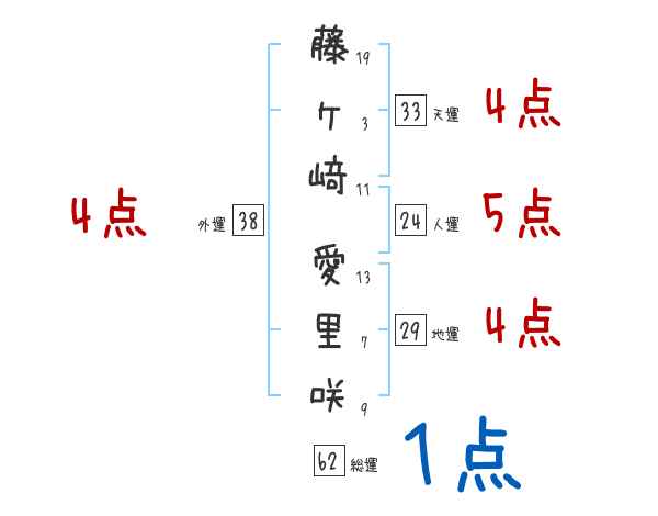藤ヶ﨑愛里咲さんの画数の鑑定結果