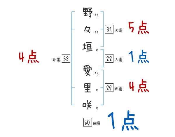 野々垣愛里咲さんの画数の鑑定結果