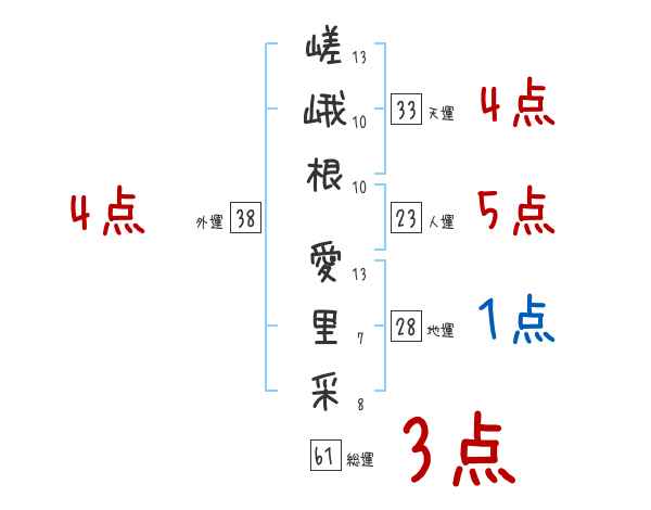 嵯峨根愛里采さんの画数の鑑定結果