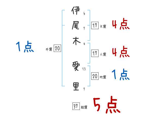 総運![]() | 伊尾木愛里さんの総運は37画の5つ星!努力家で順応性に優れる。現実的な考え方ができ忠実に物事をこなす。 あなたの人生を表す1番重要な運勢です。生涯を通じて影響する総合運となり、主に50歳以降の晩年期に影響を及ぼします。 |