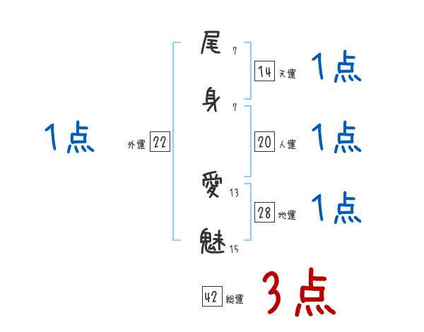 総運![]() | 尾身愛魅さんの総運は42画の3つ星!病気に注意。多芸であるが消極的でおとなしい。 あなたの人生を表す1番重要な運勢です。生涯を通じて影響する総合運となり、主に50歳以降の晩年期に影響を及ぼします。 |