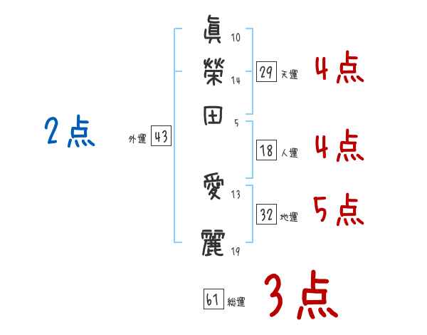 眞榮田愛麗さんの画数の鑑定結果