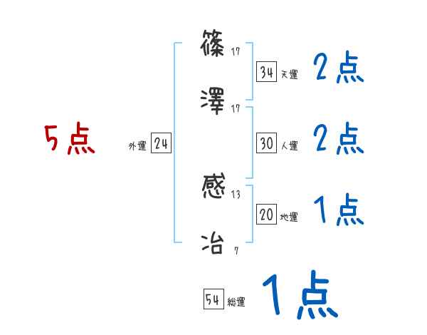 篠澤感冶さんの画数の鑑定結果