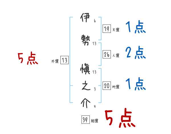 外運![]() | 伊勢愼之介さんの外運は13画の5つ星!才能に恵まれ人気がある。名声を手に入れる。円満な人生。 生活面を象徴する運勢です。外部から受ける影響力を表し、結婚運、家庭運や職場、環境への順応性を表します。 |
