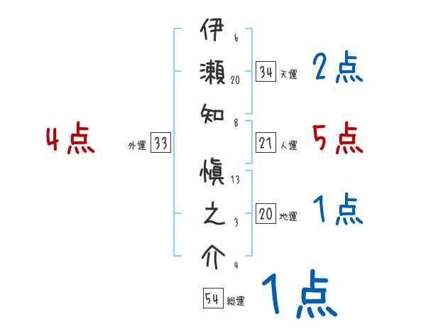 伊瀬知愼之介さんの画数の鑑定結果