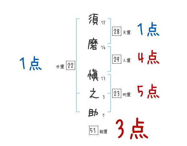 須磨愼之助さんの画数の鑑定結果