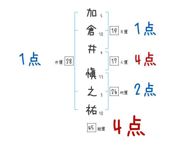 総運![]() | 加倉井愼之祐さんの総運は45画の4つ星!もくもくと物事を進め達成する。地味な努力家。 あなたの人生を表す1番重要な運勢です。生涯を通じて影響する総合運となり、主に50歳以降の晩年期に影響を及ぼします。 |