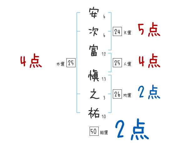 安次富愼之祐さんの画数の鑑定結果
