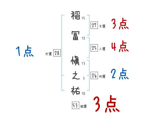 稲冨愼之祐さんの画数の鑑定結果