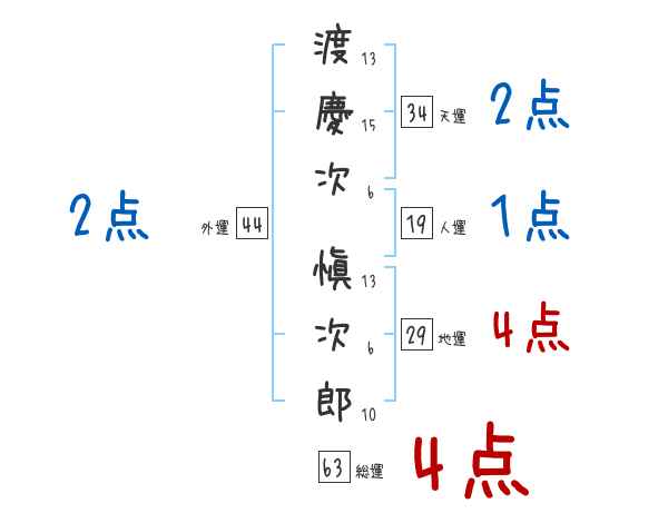 天運![]() | 渡慶次愼次郎さんの天運は34画の2つ星!独創性に優れるが、自尊心が強く災難に注意しましょう。 家系が持つ宿命的な運勢を表します。祖先から受け継いだ苗字ですので自分の力が及びません。家柄を象徴します。 |