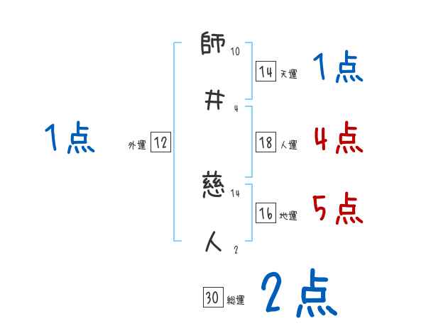 師井慈人さんの画数の鑑定結果
