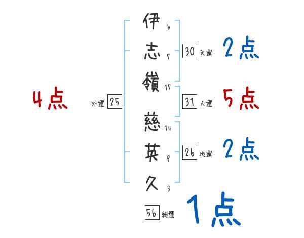 地運![]() | 伊志嶺慈英久さんの地運は26画の2つ星!波瀾万丈かも。信頼できる人を大事にしましょう。 個性を表す基礎的な運勢です。性格形成や対人関係、行動力など家庭環境に影響されます。主に誕生してから20歳くらいまでの若年期の運勢を表します。 |