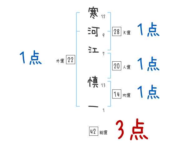 天運![]() | 寒河江慎一さんの天運は28画の1つ星!家庭環境に注意。スポーツで活躍できる能力があるかも。 家系が持つ宿命的な運勢を表します。祖先から受け継いだ苗字ですので自分の力が及びません。家柄を象徴します。 |