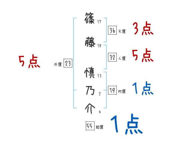 人運![]() | 篠藤慎乃介さんの人運は32画の5つ星!柔軟性があり成功する。チャンスが多く金運が良い。 性格や才能などを表す2番目に重要な運勢です。人間関係や協調性、社会的な成功に影響します。主に20歳から50歳ぐらいまでの中年期の運勢を表します。 |