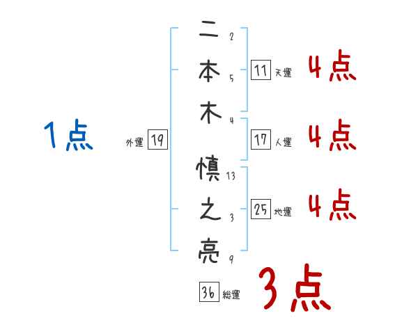 二本木慎之亮さんの画数の鑑定結果