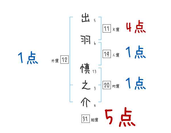総運![]() | 出羽慎之介さんの総運は31画の5つ星!社交性があり判断力に優れる。順風満帆な人生で円満な生活。 あなたの人生を表す1番重要な運勢です。生涯を通じて影響する総合運となり、主に50歳以降の晩年期に影響を及ぼします。 |