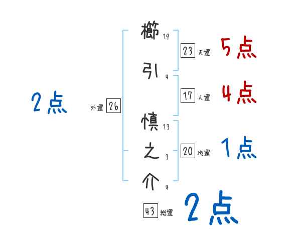 天運![]() | 櫛引慎之介さんの天運は23画の5つ星!想像力に優れ活力がある。一代で成功し名誉を手に入れる。 家系が持つ宿命的な運勢を表します。祖先から受け継いだ苗字ですので自分の力が及びません。家柄を象徴します。 |