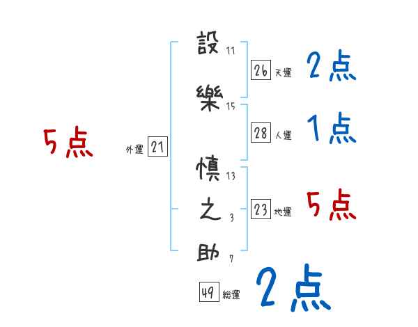 外運![]() | 設樂慎之助さんの外運は21画の5つ星!統率力がある。独立し成功する。名誉を手に入れる。 生活面を象徴する運勢です。外部から受ける影響力を表し、結婚運、家庭運や職場、環境への順応性を表します。 |
