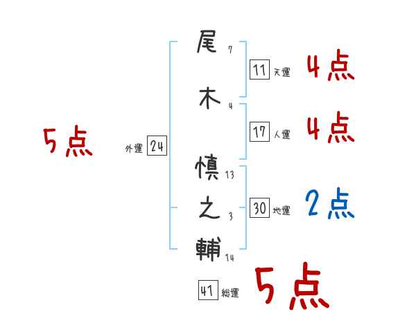 尾木慎之輔さんの画数の鑑定結果