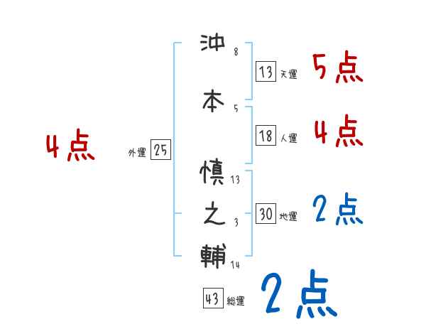 沖本慎之輔さんの画数の鑑定結果