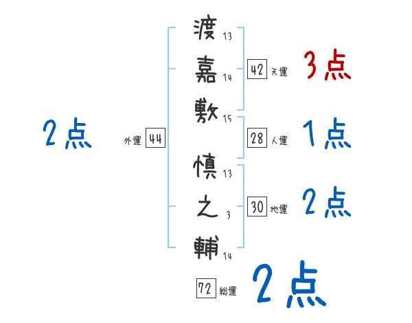 渡嘉敷慎之輔さんの画数の鑑定結果