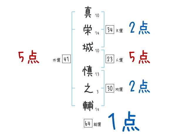 天運![]() | 真栄城慎之輔さんの天運は34画の2つ星!独創性に優れるが、自尊心が強く災難に注意しましょう。 家系が持つ宿命的な運勢を表します。祖先から受け継いだ苗字ですので自分の力が及びません。家柄を象徴します。 |