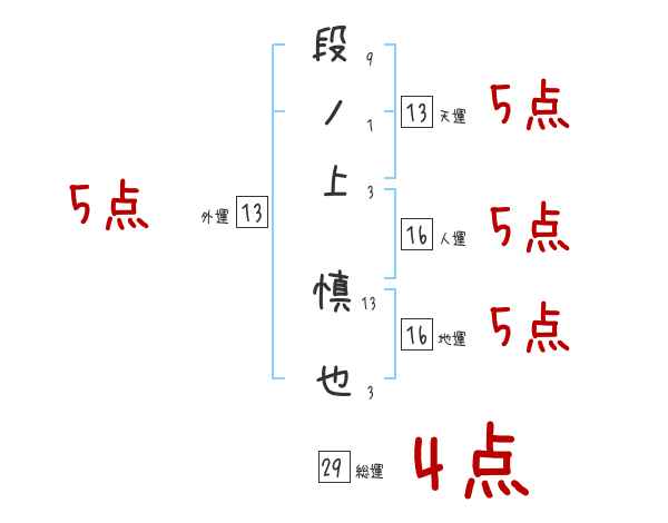 段ノ上慎也さんの画数の鑑定結果
