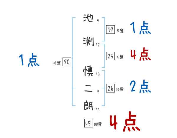 総運![]() | 池渕慎二朗さんの総運は45画の4つ星!もくもくと物事を進め達成する。地味な努力家。 あなたの人生を表す1番重要な運勢です。生涯を通じて影響する総合運となり、主に50歳以降の晩年期に影響を及ぼします。 |